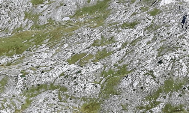 2. Fotografia e dytë është marrë nga maja e Veleçikut. Duken qartë rrethimet me mure të ulta punuar me gur në të thatë që rrethojnë kullotat.