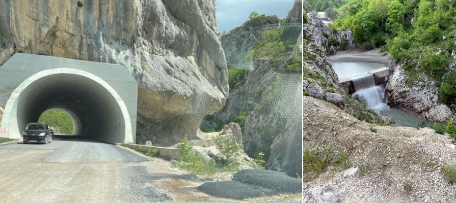 Në foton 20 Lavdoshi ka pozuar në Kanionin e Tujanit kurse foto 21 na jep një pamje nga lart të kantierit në hyrje të tunelit në Bastar Murriz.